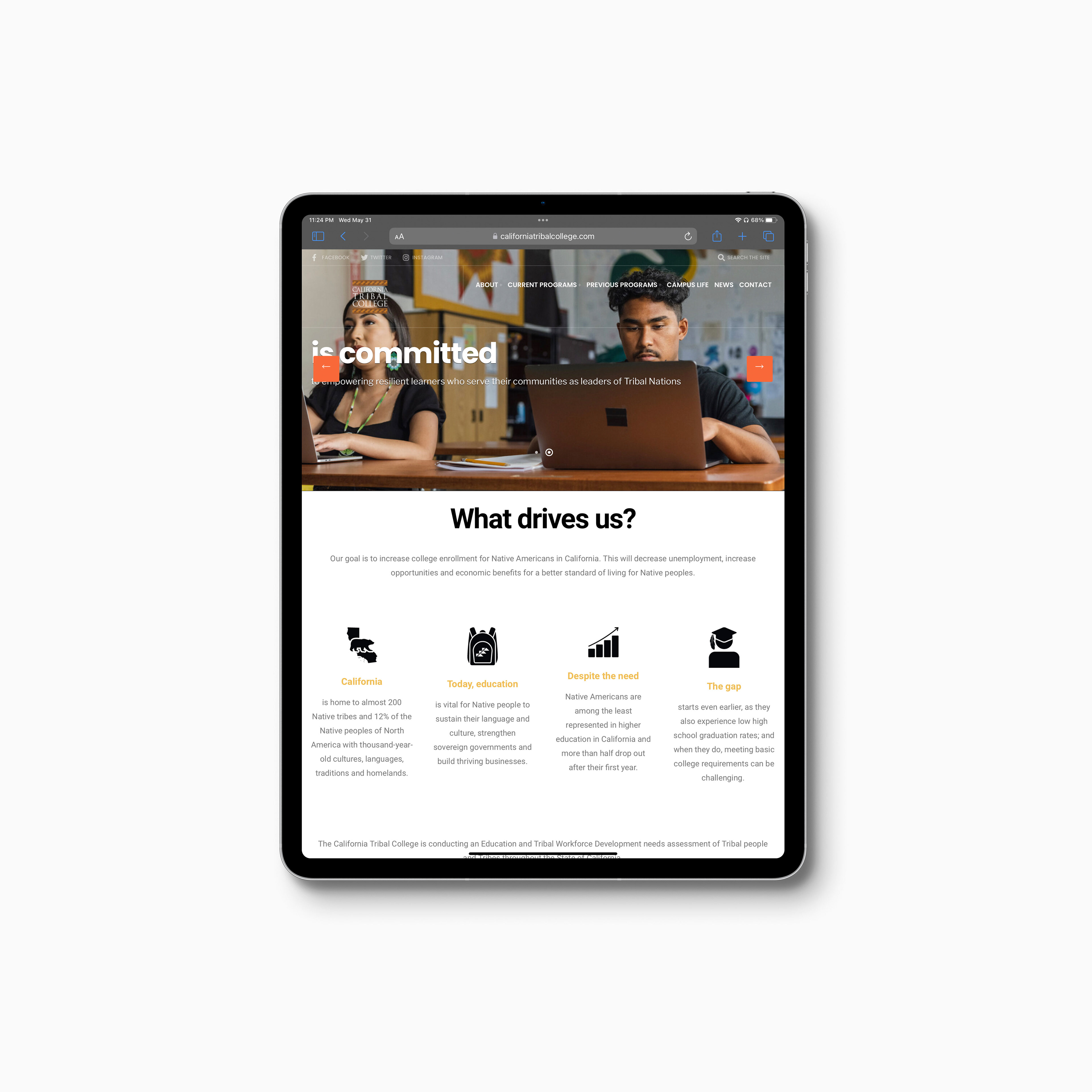 This project involved the redesign of the California Tribal College website, supporting the institution’s mission to become the first four-year Tribal College in the State of California. The website was developed to communicate the College’s vision for advancing Tribal sovereignty, leadership development, and access to culturally relevant higher education for Native students across California.